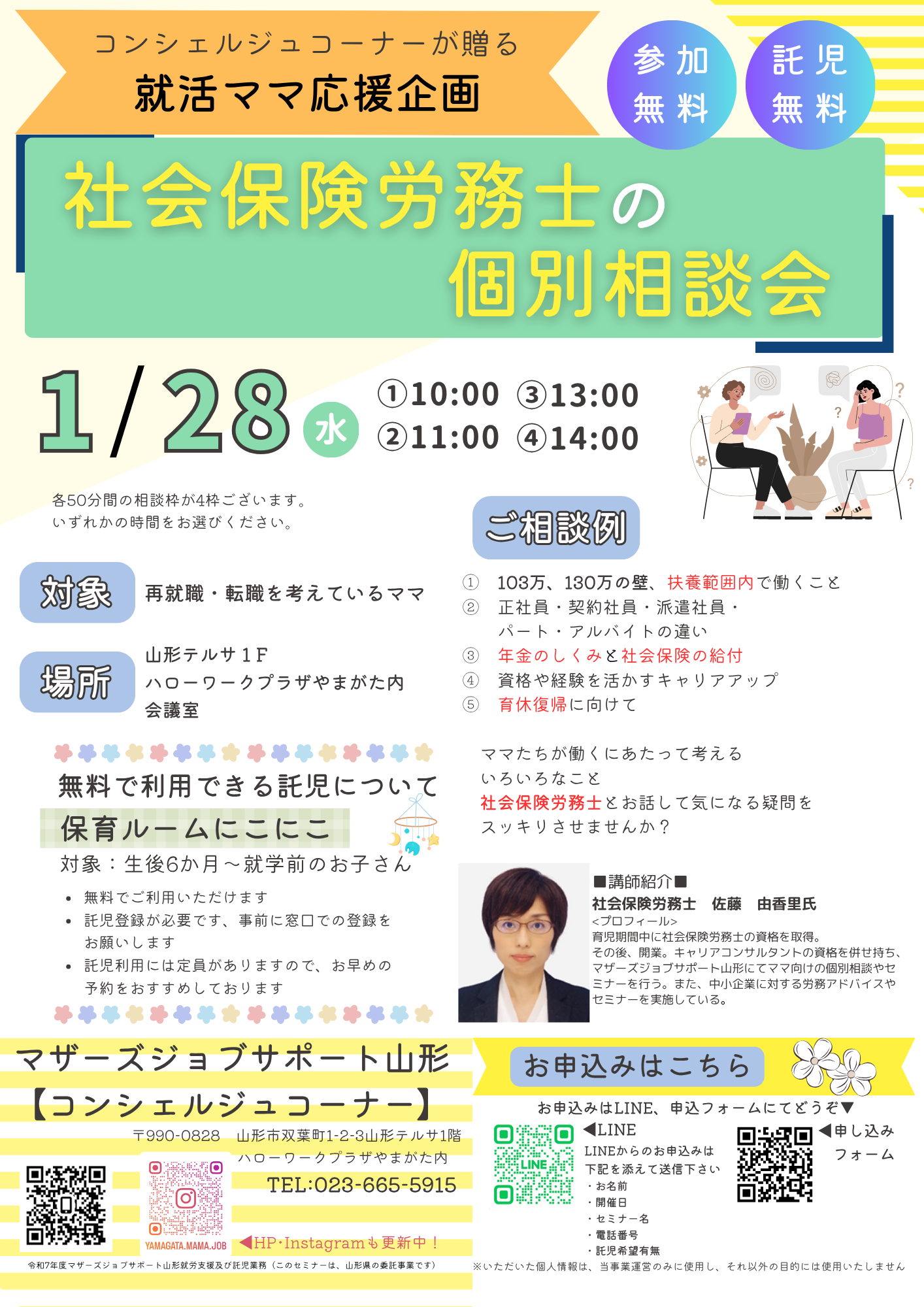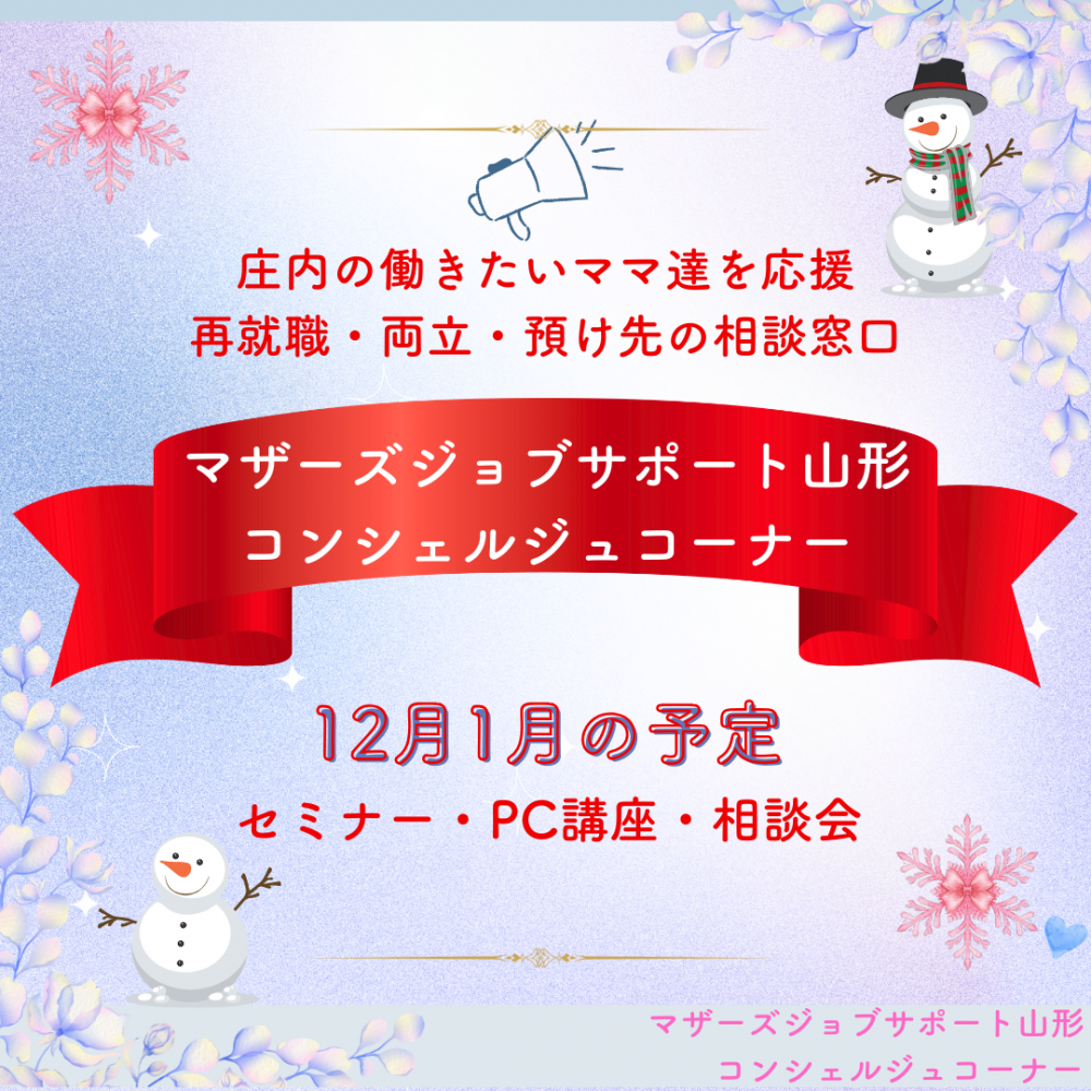 ▼★12月、1月開催一覧★2025/11/01 13:20 (C) マザーズジョブサポート山形