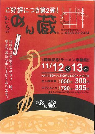めん蔵 新庄店1周年の感謝をこめて