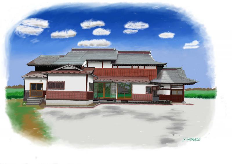 三川町「アトクさんの館」のイラストを書こうかなと思ってやっています。