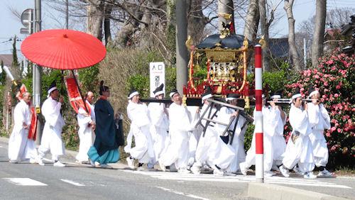 信号待ちしてたら丁度お祭りの行列が通りすぎて行きました。