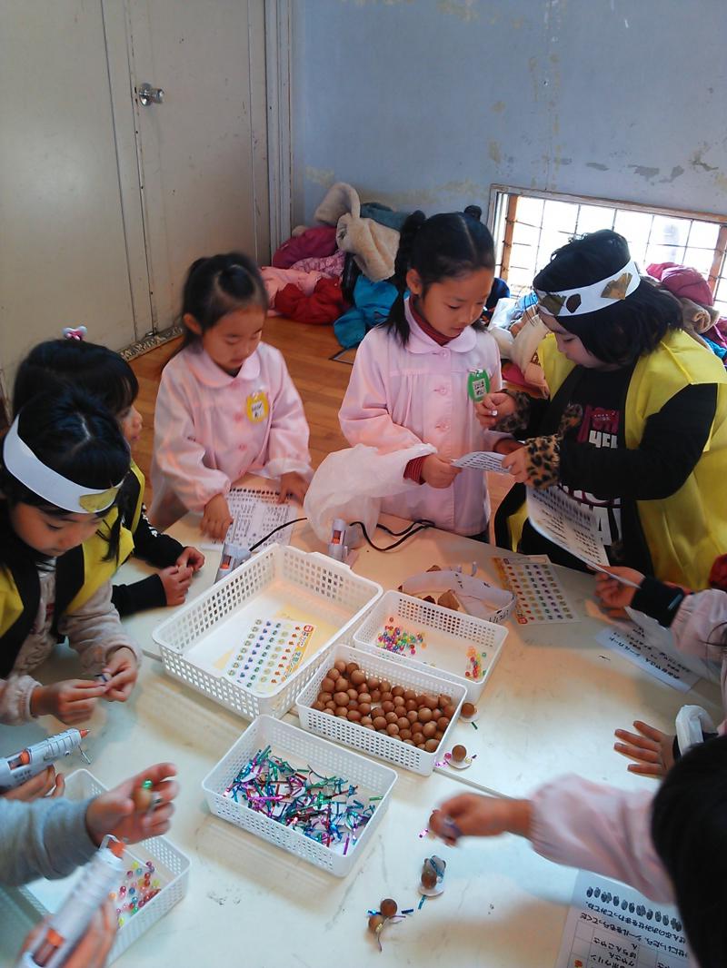 どんくりにビーズをつけてもらって可愛い指輪の出来上がり(^w^)女の子に大人気だったね♪