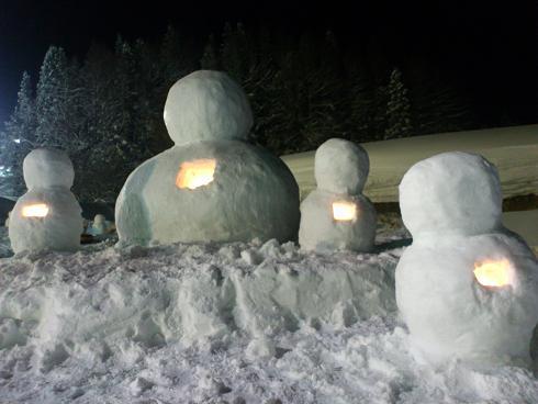 ふるさと振興公社やスキー場のひとたちの応援もあり大1個、小50個の雪だるまを作ることができました。