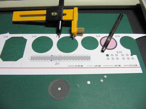 今回の【トイトレイン】制作のためにコンパスカッターとポンチ3oを買っちゃいました!コンパスカッターで車輪などの丸いものを切るときれいな円に切れます。あと、3oの車軸部品は、手芸用のポンチで部品を切り出しました。おお〜!きれいだ!機関車は丸い部品がいっぱいあるので、これはいいですねぇ。カッターで苦労して切り出していたのが、これで楽になった。