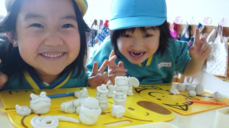 熱心に粘土遊びをしていた年中の女の子。すごく細かくかわいいケーキを作っていました。