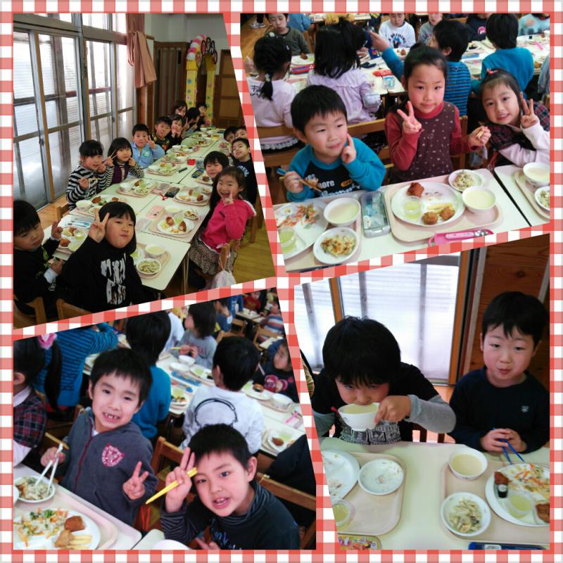 唐揚げ、フライドポテト、グラタン、サラダ、のり巻き、おいなりさん、ゼリーなどみんな大好きなメニューばかりで大喜び♪