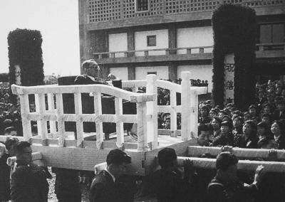 当時の岸首相が、「来賓」予定でしたが急遽秘書の「安倍晋太郎」が代参したのでした。