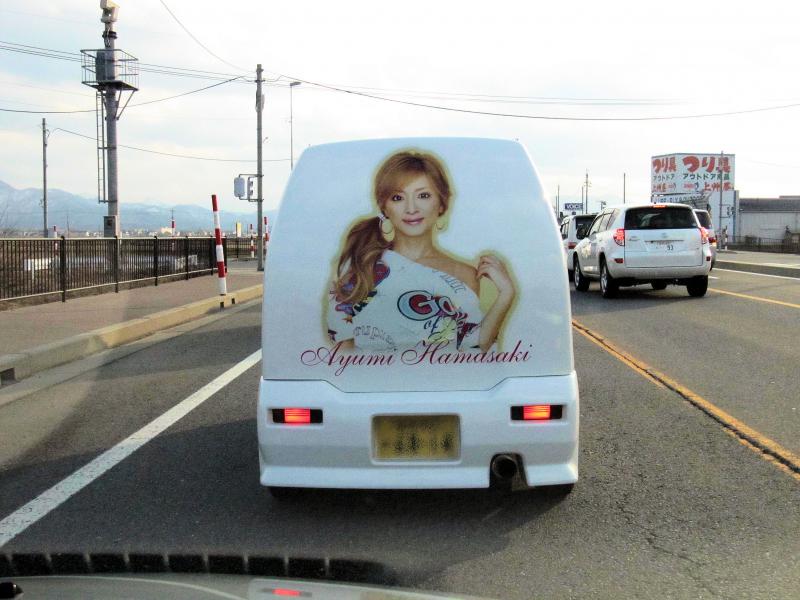 前の車すごいねぇ!浜崎あゆみだよ!ちょっと勇気がいるねぇ。あと、飽きがこないかなぁ?でも、仕上がりはすごくきれいだった。うまいなぁ!