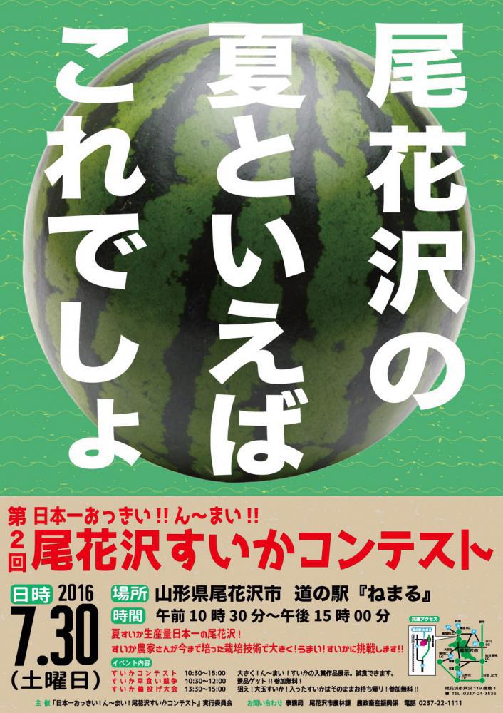 http://www.obane-kankou.jp/祭りイベント情報-1/第1回尾花沢すいかコンテスト/7月30日(土) 10:30〜15:00尾花沢道の駅「ねまる」 夏スイカ日本1の生産地尾花沢市のスイカ農家の栽培技術のコンテストですその他イベント スイカ重さ当てクイズ・スイカ輪投げ大会 大きくて・ん〜まいスイカ 是非食べに来てください