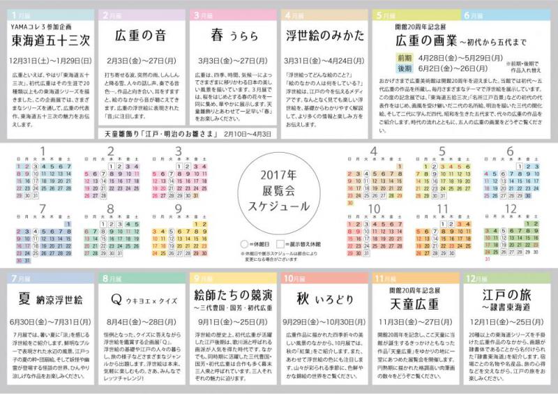 広重美術館はおかげさまで4月で開館20周年をむかえます。2017年も一年を通してさまざまなテーマで企画展を予定しておりますので、今後ともどうぞよろしくお願いいたします。