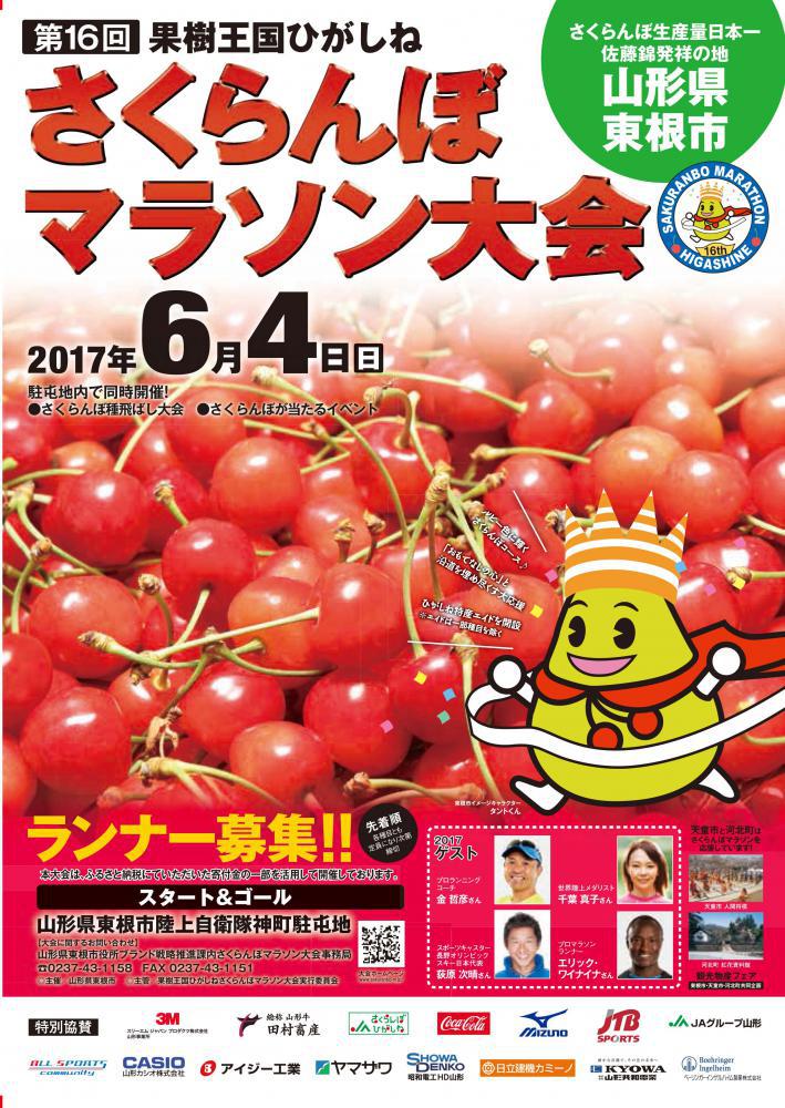 明日6月4日(日)はお隣の東根市で「さくらんぼマラソン大会」が開催されます!!明日のお天気は「曇り」、気温は17度の予想。お天気もってほしいですね♪ランナーの皆さんは体調に気をつけて頑張ってください♪当日はマラソン大会の他、さくらんぼ種飛ばし大会や観光物産フェアなども開催されますので、ぜひ皆さんお越しくださいませ♪【さくらんぼマラソン大会】日時:2017年6月4日(日)場所:東根市陸上自衛隊神町駐屯基地内※当日無料シャトルバス有り(さくらんぼ東根駅・さくらんぼ東根温泉ー会場内)詳細はこちらから美味求真の宿 天童ホテル 公式HPhttp://www.tendohotel.co.jp/