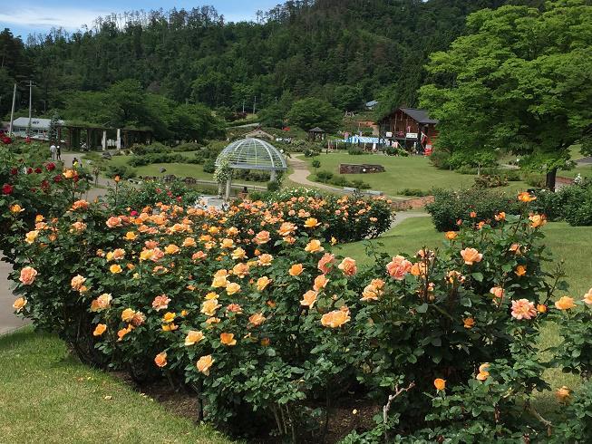 村山市の空は本日曇り空となっております。バラの開花状況は5分咲き強となりました。まだまだ、気温が低いため開花が遅れている感じですが、園内は甘い香りにつ包まれておりますよ!