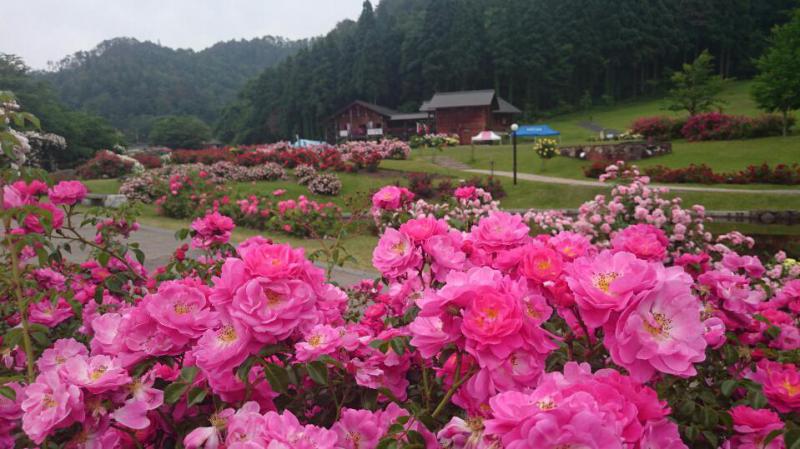 今日は曇り空となっておりますが、まずまずのお天気となっております。バラの状態は、傷んだところは多少ありますが、見応えは十分です。バラ公園には、かわいいお客様もたくさんお見えになります。