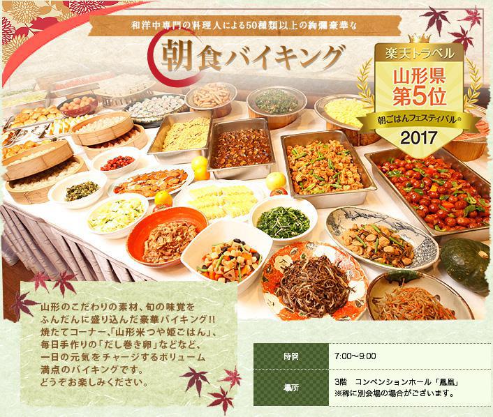 ご報告が遅くなってしまいましたが・・・先月発表された、楽天トラベルの「朝ごはんフェスティバル2017」で、たくさんの“食べてみたい””おいしかったよ”の投票を頂き、山形県第5位に選ばれました!投票や周りの方にお知らせしてくださった皆様、誠にありがとうございます!これからも「おいしかったなぁ」と喜んで頂ける朝食タイムを追求して参ります。冬は、根菜が旬の季節ですね。煮物が美味しいですよっ。 美味求真の宿 天童ホテルhttp://www.tendohotel.co.jp