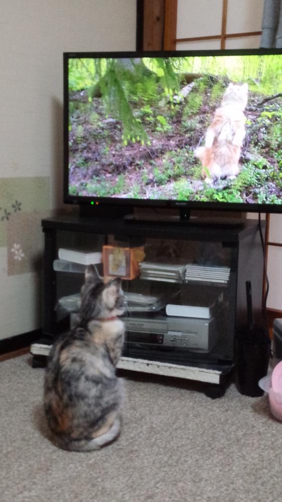 岩合光昭さんの猫の番組を、姿勢を正して真剣に見るにこちゃん?