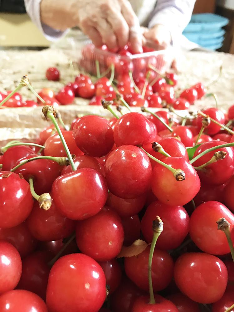 山形のさくらんぼは、一番人気品種「佐藤錦」が最盛期を迎えています♪果樹園のさくらんぼ狩りも毎日賑わっています★農家の皆さんは、贈り物用の収穫・発送に毎日大忙しです。早朝夜明け前の涼しい時間にさくらんぼを収穫して、その日のうちにひたすら箱詰めと発送作業!ひとつひとつ手作業で丁寧に箱(パック)の中に並べていきます。よく「真っ赤なルビー」や「赤い宝石」と例えられますが、綺麗に並べて箱詰めされたさくらんぼは、まさに宝石のよう!食べるのがもったいない程です。早朝に収穫するさくらんぼは、ハリがあり皮がパリッとして甘さが違います。贈り物のさくらんぼは、ほぼすべて早朝摘みの一番美味しいさくらんぼです。天童温泉では、昨年からこの一番美味しい状態のさくらんぼを味わう「早朝のさくらんぼ狩り」体験ツアーを開催しておりますが、今年もリピート体験される方がいる程、美味しいさくらんぼ狩りを楽しめます。>>【6/22〜7/3】佐藤錦の朝摘みさくらんぼ狩りツアー付宿泊プラン>>【7/4〜7/8】紅秀峰の朝摘みさくらんぼ狩りツアー付宿泊プラン旬の時期が2週間程しかないさくらんぼ、食べるなら“今”です!!山形の初夏の味覚を味わってくださ〜い♪美味求真の宿 天童ホテル 公式HPhttp://www.tendohotel.co.jp