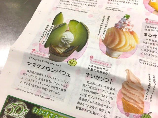 河北新報社の《夏のおでかけガイド2018》で「マスクメロンパフェ」をご紹介頂きました。