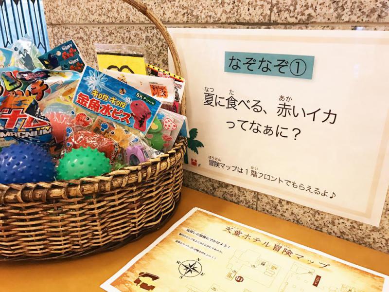 お盆休み期間中に夏休みイベントを開催します♪『館内なぞなぞ大冒険』『縁日』『マジックショー』の3イベント!お子様と一緒にどうぞお楽しみくださいませ♪――――――――――――――――――――――――――★【8/8〜8/26】『館内なぞなぞ大冒険』館内に隠された10個のなぞなぞを探しに行こう!冒険マップをもとになぞなぞを見つけて問題を解けるかな!?全部のなぞなぞを見つけて全問正解するとイイモノがもらえるかも!時 間:いつでもどうぞ(B1・1・2Fフロア)参加費:無料★【8/11〜15】『縁日コーナー』「射的」「スーパーボールすくい」「ボーリング」の3つのゲームが楽しめるよ!パパママと一緒に参加して景品をゲットしよう♪外れても残念賞をもらえます^^時 間:20時〜21時(ロビー)参加費:2回で200円★【8/11〜15】『マジックショー』夕食後はロビーに集合!君はいくつのマジックを見破れるかな!?日毎に違うマジックを見れるよ!時 間:20時過ぎ〜20分程参加費:無料――――――――――――――――――――――――――ぜひ夏の旅行の思い出にご参加くださいませ♪♪美味求真の宿 天童ホテル 公式HPhttp://www.tendohotel.co.jp/