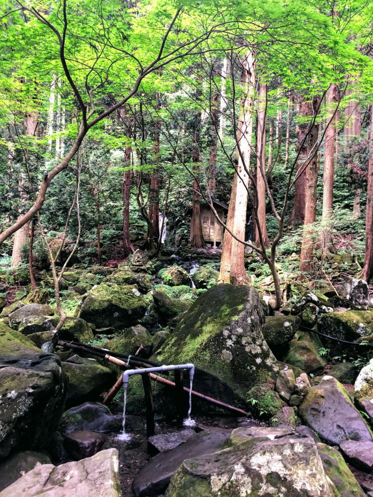 丸池様とはまた違う神秘的なパワーに満ちた湧水の地。鳥海山の伏流水が山腹から滝状に湧き出しまるで身体の「どうっぱら/どっぱら」から湧く滝です。杉林の中に小さな杜があり、その杜を挟んで二つの滝があります。左の湧水は珈琲、右の湧水は日本茶に合うと言われています。また、子安大聖不動明王をお祀りし安産の神としてもあがめられております。胴腹瀧不動堂開創 年代不詳御本尊 子安大聖不動明王 酉年生守り御本尊御縁日 二十八日古記録によると、安永年中(1772〜1777年)一宇あり、行者宝雲海は、朝日村(現鶴岡市)七五三掛の注連寺での修行後、遊佐のこの地でさらに修行す。その子法寿(二十歳の頃)、京都三宝院で修行、帰国後、朽損の堂を再建、法寿の造った御影版木には、「そもそも胴腹瀧と申し奉るは、人の身躰一切を守り賜う故を以って胴腹瀧と唱え奉る。この瀧は、往古より子安大聖不動明王として胴より始めて腹部の守護するなり。」と刻まれている。この胴腹瀧不動堂は、代々八日町の住人高橋嘉之助家(当山派(醍醐寺)石宝院)が守り、現在にいたる。※胴腹滝不動堂の説明版より