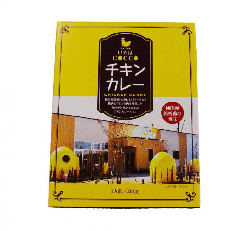 いではCOCCOチキンカレー 株シ澤鶏卵810円(税込)内容量:200g 純国産鶏種「もみじ」と「さくら」の挽肉とブロック肉を使用した鶏肉の旨味を生かしたチキンカレーです。