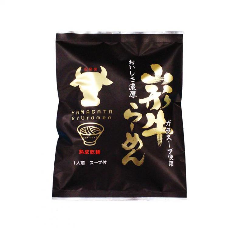 山形牛らーめん 褐纉。製麺工場350円(税込)内容量:麺80g・スープ46g 深い味わいとまろやかな脂質が魅力の山形牛、ブランド和牛のガラを使用した濃厚なスープが絶品です。低温28℃にて乾燥させたコシのある中華麺です。