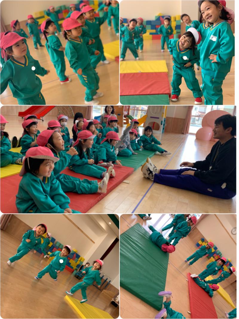 マットの上を転がってみたり、、、等