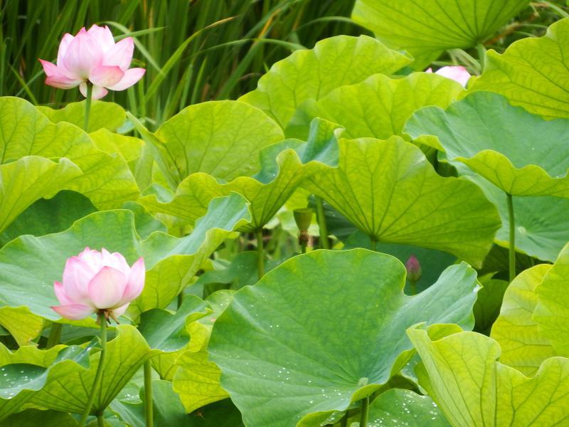 作谷沢「たての香苑」のハスの花が咲き始めてきました。今年は例年に比べて少し花の数が少なく感じますが、青々とした大きな葉の中からピンク色の美しい花が咲いていました。全体的にまだつぼみも少し見られるので、これからもう少しハスの花が見られそうです。ハスの花は早朝に咲き、昼頃に閉じてしまうため鑑賞するなら午前中の早い時間がおすすめです。