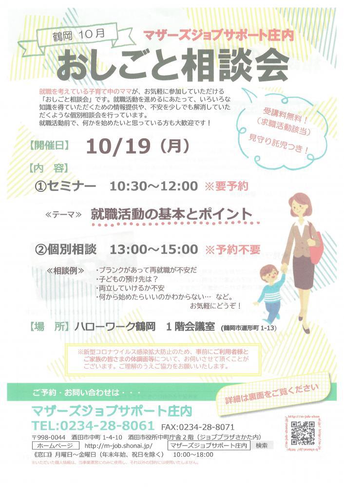 ●10月 マザーズおしごと相談会in鶴岡 開催のお知らせ