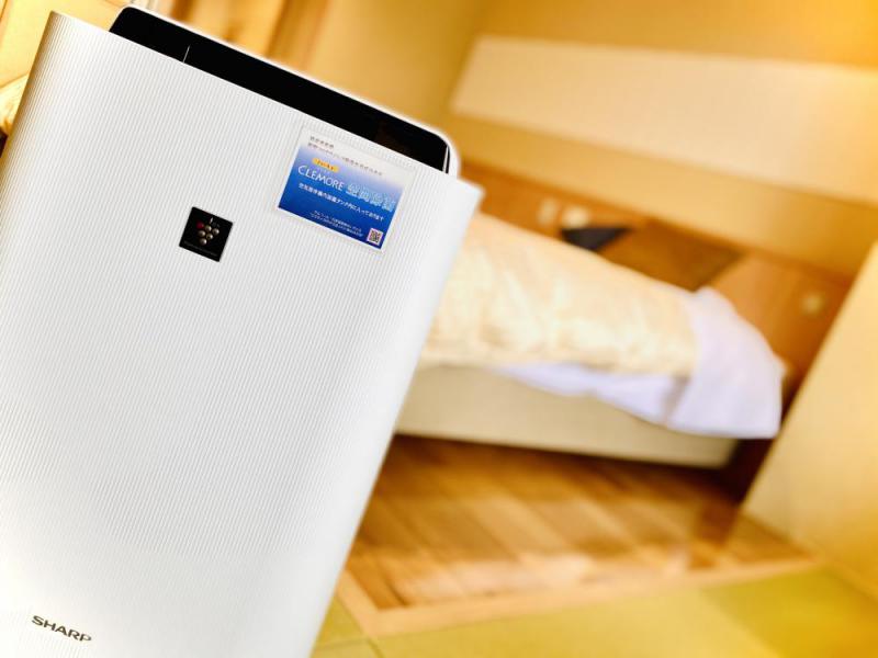客室に空気清浄機を設置いたしました!ご宴会場として使用している4階の一部のお部屋を除く全ての客室に設置しております♪空気清浄機の中には新型コロナウイルス除菌効果成分が含まれるクリモアという除菌消臭剤が入っております。クリモアさんの公式サイトユーザーレビューに天童ホテルもレビューさせていただいておりますのでご興味ある方は1度除いてみてくださいませ! ▼クリモア 公式サイト【ユーザーレビュー▼https://clemore.net/review/ 美味求真の宿 天童ホテルhttps://www.tendohotel.co.jp/