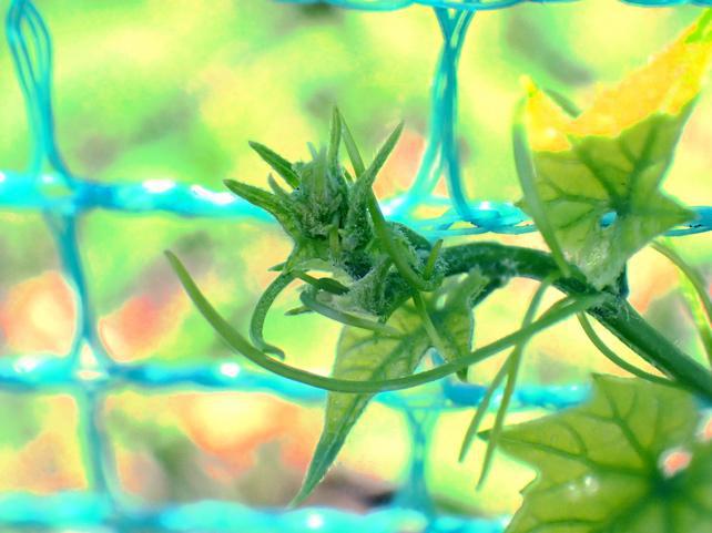 6/3 畠整理で折れたニガウリの生まれ変わり生えてきました。10本ありました。多分此処で数年生きていたのだと思う。要観察です。