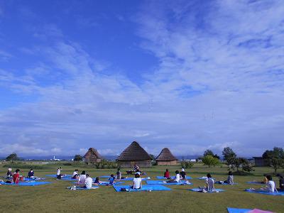 今日は待望の朝ヨガ講座を開催(企画構想約4年)記念すべき第1回目(継続規模)周辺の農家さん、鳥たち、今日は何事かと驚かせてしまいましたね。参加者25名、幼児から80代まで。ヨガといっても、自分を労わるような優しいストレッチ。それでいて、最初と最後に立ち木のポーズをとりましたが、全然違っていました〜最初はグラグラだった方も、ぴっと立ち木になっていました! 時折小雨、時折ギラギラの日差しがありましたが、これぞアウトドアヨガの醍醐味、遺跡ヨガの面白さです〜今回参加を見送られたそこのあなた、次回はぜひ一緒に楽しみましょう。2021-08-01 西沼田サポーターズ・ネットワーク ブログより