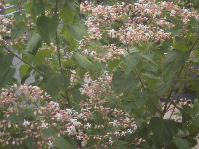 若やの臭木です。満開です。wifeが染料にする種子を取るためです。多くの虫が集まってきます。