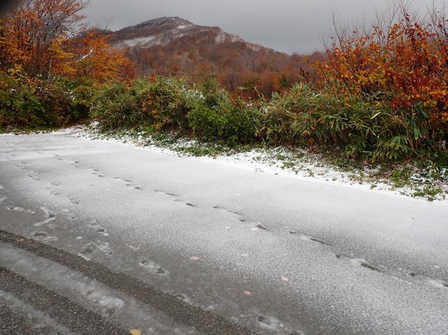 積雪5cm。ここからに展望では落葉始まったばかり。