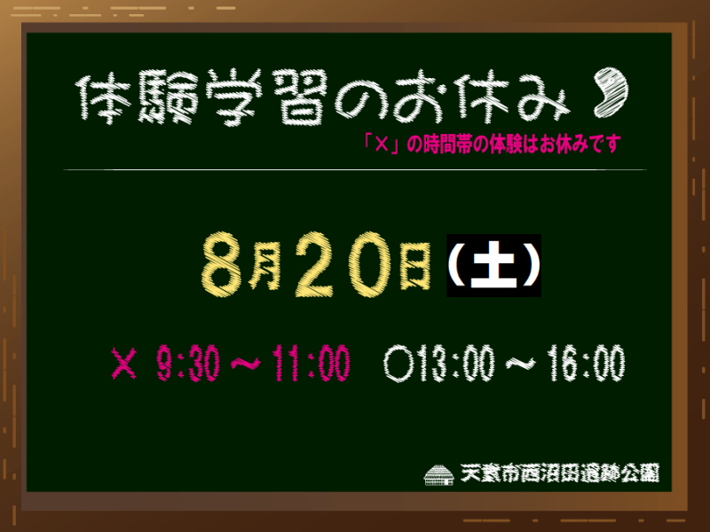 ●【ご確認ください】8月20日の体験学習について