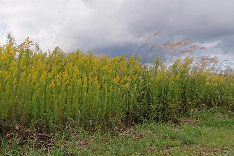 ●昨日は十三夜の月でしたがご覧になりましたか 写真は月ではなく「セイタカアワダチソウ」と「ススキ]のコラボレーションです どちらも秋を代表する野草ですが十三夜の月に合わせて「ススキ」をアップしてみました