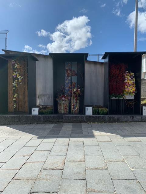 まぶ、眩しい…。ちょっと風は強いのですが日差しが眩しく…。今日は良い秋の日ですね。フラワーアート展を見学される方も多くいらっしゃいました。それも若い人が。