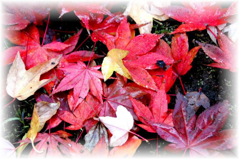 ●今朝の気温が1度 もういつ雪が降ってもおかしくない季節となりました 庭の木々といってもたいした木ではありませんがわずかの葉を残すだけとなりました 紅や黄色の葉っぱが雨に濡れて一面に落ちています