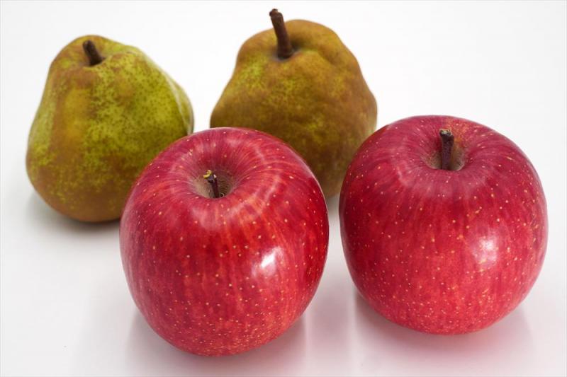 甘みと酸味のバランスのとれたシャキシャキした食感の「ふじりんご」果汁あふれるなめらかな果肉の「ラ・フランス」この時期ならではの組み合わせです。 クリスマスに、年末年始のご家族のお集まりに、おすすめのフルーツです♪ 果樹王国・山形県東根市若木(おさなぎ)産の完熟した「本ふじ」です! 360度どこから見ても真っ赤なりんご♪まんべんなく太陽の光を受けた証です。それは作り手のりんごへの情熱の証でもあります。 太陽をたっぷり浴びて甘いりんごに仕上がります。 今シーズンも上質なラ・フランスができました!滴れ落ちる果汁。口に入れると甘さとさわやかな酸味が広がり、一瞬にしてとろりと溶けるような果肉をお楽しみ頂けます。 特大のりんご&ラ・フランスが3個ずつ、食べきりサイズです。 購入ページにもどる