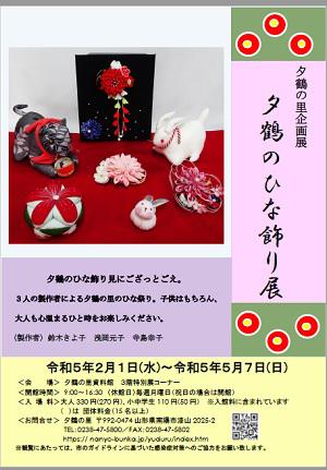 当館では、2月1日(水)より企画展「夕鶴のひな飾り展」を開催します。今年も3人の製作者の作品を中心としたひな飾りを展示を予定しております。