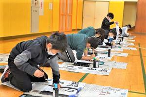 3連休明けの本日、校内書初め会が行われました。1〜2年生は硬筆、3〜6年生は毛筆で行いました。新年稽古事はじめとして行われる〜初め、習い事や武道などの稽古を新年初めに行うことで、上達を願うとされています。全校児童画まず体育館に集合し、開会式を行いました。2学期と冬休みにも練習を重ねてきました。丁寧に、心を込めて書いていました。