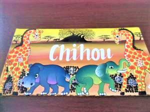 本校PTA会長の平さんから、タンザニア出張のお土産をいただきました。タンザニアの絵の技法の「ディンガディンガ」で描かれた壁掛けです。アフリカの動物たちをカラフルにかわいらしく描いたポップアートです。中央部分には「chihou」(ちほう)と書かれた本校のための特注品です。本当に素敵なそして貴重なものをいただきました。みんなが見ることができるように飾らせていただきます。ありがとうございました。