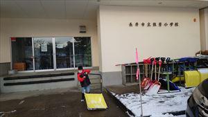 夜間の冷え込みが続いて、今日の朝も路面は凍っていました。登校中に滑ってけがをしてしまった人もいます。どうぞ十分注意してください。今週も助かりました。ブルドーザーで除雪してもらっても、いざというときの避難口付近、登下校の時に通りやすいように道を広げること、職員やお客さんの駐車スペースなど、細かいところはやはり手作業が必要です。本当に寒い中でありがとう!