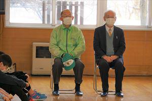 今日の朝会で「交通安全感謝の会」として、致芳っ子見守り隊の皆さんに1年間の感謝を伝える会を行いました。皆さんにご案内をお出ししたのですが、お仕事の都合などもあり、佐藤さんと金田さんにお出でいただきました。「雪道で雪のかたまりを蹴って歩いている人を見かける。下ばかり見ていると、危険です。左右の安全を確かめながら歩きましょう」と教えていただきました。その後の情報交換では、必ずあいさつの後に手を振ってくれる児童がいて、心が通じ合っているようでうれしくなること、立っている場所を通るaあけぼの班はとても挨拶がいいとほめていただきました。元気のいいあいさつに支えられて見守り隊活動を続けてくることができたとお話しておられました。そして、学校としては、自宅2階に飾って20年以上、児童を見守り続けているあのアンパンマンの人形を「特別見守り隊員」として任命することにして、さらに致芳っ子見守りベストをお渡しすることにしました。安全の見守りに深く感謝いたします。今後ともどうぞよろしくお願いいたします。