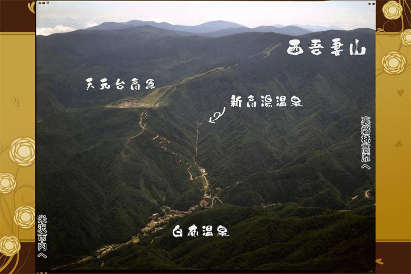 もうお分かりですよね。 位置関係図です。白布温泉〜新高湯温泉は車で6分(2km) 新高湯温泉 五つの絶景露天風呂 吾妻屋旅館