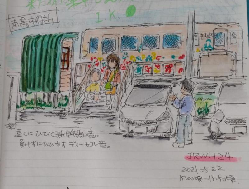 「次は南陽市役所、南陽市役所です。」のアナウンスと共に、私は窓の向こうを眺めた。この駅を降りて、市役所のすぐ近くに高速バスの停留所があるのである。私は5年前、高速バスに乗ってこの地域の市役所にインターンシップに来て、一か月後、ここから郷里に帰って行った。 その当時私は、大学で学ぶことに意義を見つけられず、卒業して何をすべきかもわからずにいた。とりあえず卒業するための単位を得るために、ゼミの先生に言われるままに、インターン生活を始めたのだった。しかしそこで知り合った大人たちは熱かった。その大人たちは、私を一人前の大人として扱い、意見を求めてきた。私はその中で、一生懸命やるってかっこいいんだと思うようになった。何処であろうが、何の仕事であろうが、一生懸命考え悩む人間になろうと思うようになった。 ここを離れる日、バス停の近くにあった回転寿司が、地元の人たちとの最後の晩餐の場所であった。そして私は実家に帰るバスに乗った。夜行バスの中で、この一か月のことを何度も何度も想い返していた。家に着いて父と母にこれからのことを話した。こんな風に両親と話すのは初めてことだった。私は大学を卒業し、福祉関係のNPOで働くことを選んだ。 そして今、私の隣の席には会社で知り合った女性がいる。その当時世話になった人に彼女を紹介するために来たのであった。彼女は、窓を開けて風が入るのを楽しんでいる。昔と同じく穏やかな山並みを遠くに見ながら、列車は想い出の街へと進んでいった。私は確かに、ここから人生という旅を歩き始めたのだ。 【おらだの会】写真は、JRWH24さんの駅ノートイラスト作品です。
