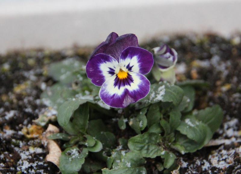 ●冬と春のせめぎあいが続くこの頃です 春のような陽気になったかと思うと雪が降りだし冬と春の間をいったりきたりしながら春が来るのでしょうか 今朝は春の淡雪のようにあまり大きくない雪がふわりふわりと降っています 咲いているパンジーの花にもふわりと雪が舞い落ちています