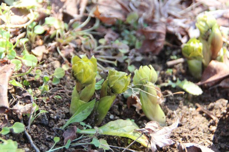 ●朝から太陽がサンサンと降り注いでいますが気温はまだ寒い朝となりました 2月23日に紹介した烏帽子山八幡宮の福寿草がこの陽ざしに誘われ少し花を膨らませていました 鮮やかな黄色の花が今日か明日には見れそうです