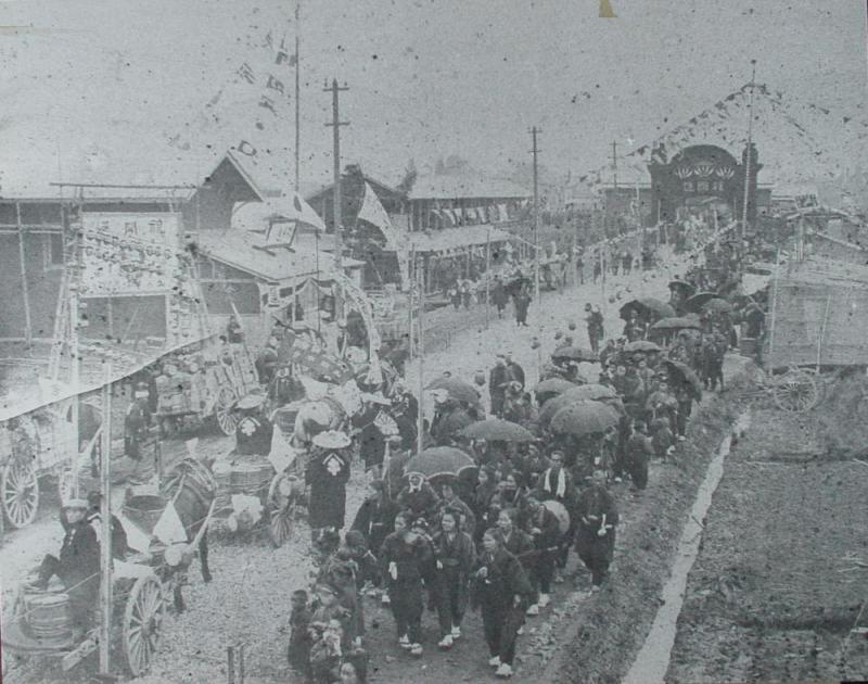 今まで長井から赤湯まで、長井から荒砥まで客馬車が通って、人々を運んでた時代。長井町といったて、本当にまだまだ小っちゃな町で、汽車がかかった停車場の前あたりは家がぱらぱら。道の北側あたりは田んぼで、11月半ばは既に稲刈りも終わり、いなし株から二番ぼけの稲が青く延びている。大正3年11月15日、初めて汽車がかかった。 朝早くから、のろしがどどんどどんと鳴り渡り、昼間は仮装行列、夜は提灯行列といろんな催しがあってお祝が盛大に繰り広げられた。町の人も在郷の人も、初めてかかる汽車に『ほんとにかかんなべが、誰でも乗られんなだべが』などと、たんとたまげで停車場前後にいっぱいの人が我先にと集まってきた。町長、校長、村長、町会議員、局長、無尽、銀行支店長、工場長、在郷軍人、巡査、消防団長などいろんな肩書きのある主だった人が、紋付き羽織袴でお祝いに呼ばれて、祝辞が次々と述べられて、町はお祝い一色でごったがえしだった。 まっちゃど源次は、2里もとがーい山の下がら、「汽車なて、話に聞いたごどあっけんども、見だごどないがら、いってみんべぇ」と朝早く飛び起き、やげめしを腰っ骨さゆっつげで、わらじ履きで出掛けてきた。停車場付近は黒山の人だかり、2本の鉄の線がずっと向こうまで続き、黒くて大っけな物が少しづつ近づく。 源次はたまげで「まっちゃ、早ぐ見ろ、見ろ。もみどが歩いで来たでないがえ」と言うど、側にいた年上の寅次郎が「軍艦が陸さ上がって来たでないべが」と言った。黒くて高い煙突から、ぽっぽっと、けぶを出してだんだん近寄って来る。流石のまっちゃも、ぶったまげでしまった。すると源次が、「こんがえに大っけなもみど、むじしぇっとぎ、なじょしんなだべ。」「あんまりおもだくて、ししゃましんなだべなえ」とまっちゃに聞いたが、まっちゃもなんぼ考えでも、なじょしんなだがわかんねがった。 人々の万歳の声が、いつまでも続いた。「人力車と汽車なて、俺らんだの乗り物でないべなえ」と源次が情けなさそうに言うど「これはしたり、あんまりせわしいごど語んねで、まっちょまず。うんとかしぇで、お前だどご乗せんぞ」とまっちゃが空威張りして見せだ。その後、大正12年4月22日、待ちに待った汽車が荒砥まで開通した。かなり昔の長井史に残る大きな騒ぎであった。 昼仮装夜提灯の行列に町民あげて祝う一日 長井線歓呼の声にお出迎え上を下えの秋の夕暮れ 【おらだの会】本稿は「長井地方の方言風物誌 西山のへつり(寺嶋芳子著)」より。写真は長井市提供。