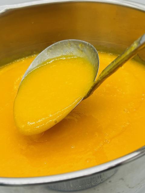 マンゴーソースを作りました。新鮮なマンゴーで作るソースは鮮やかなオレンジ色です。その時期のマンゴーよってマンゴーソースの味も変化します。今日はちょっぴり酸味の効いた爽やかな味わいに仕上がりました。パフェ・シェイクになって登場です♪