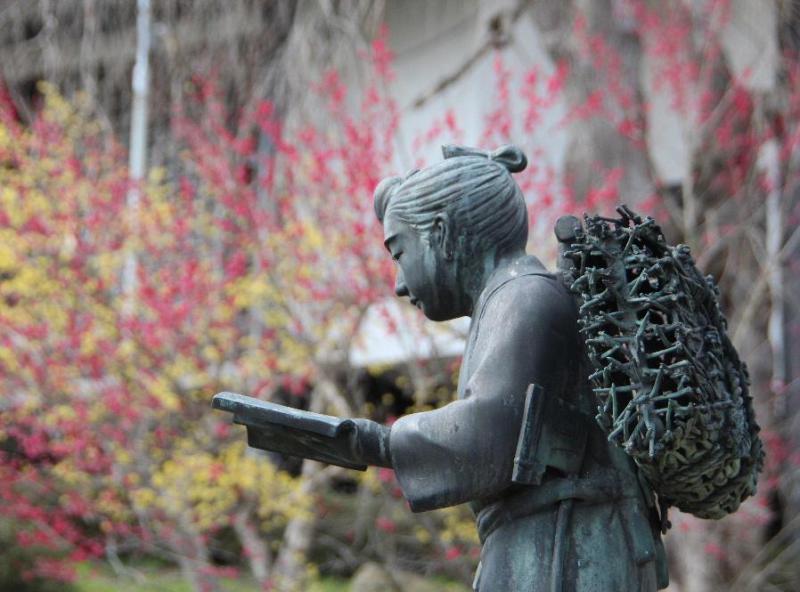 ●梅の花のそばの二宮金次郎の銅像をみてきました どこの小学校にでもあった銅像ですが今の子ども達は全くわからないだろうとと思われます いったい何歳以上の人がわかるでしょうか 母校の校庭に建立されていた懐かしい銅像を思い出します