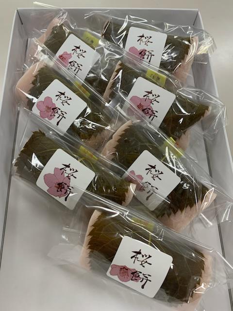 桜餅。六味庵(0238-43-6363)中の滑らかな餡と桜葉のほのかな塩味がうまくマッチしています。今年一番の桜餅。